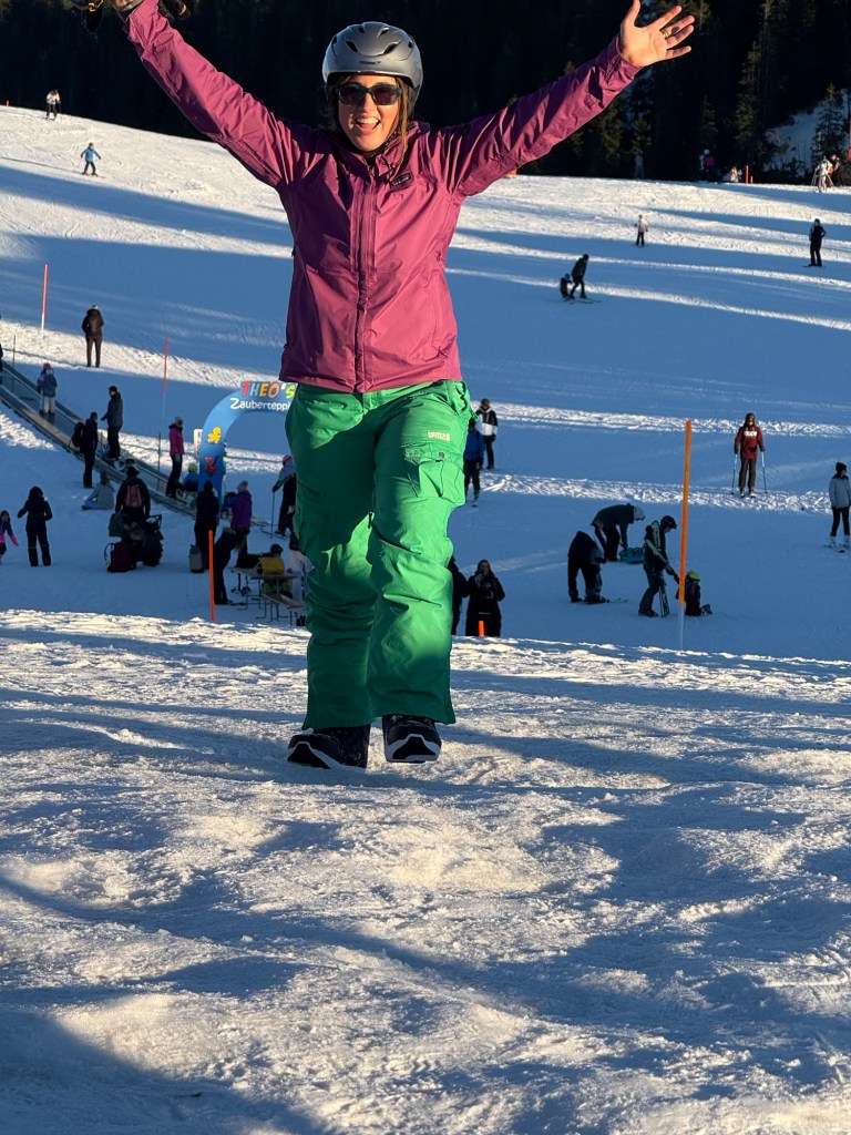 Some of the crew heading up to the slopes. Life above the clouds Lauren after a brilliant day snowboarding!